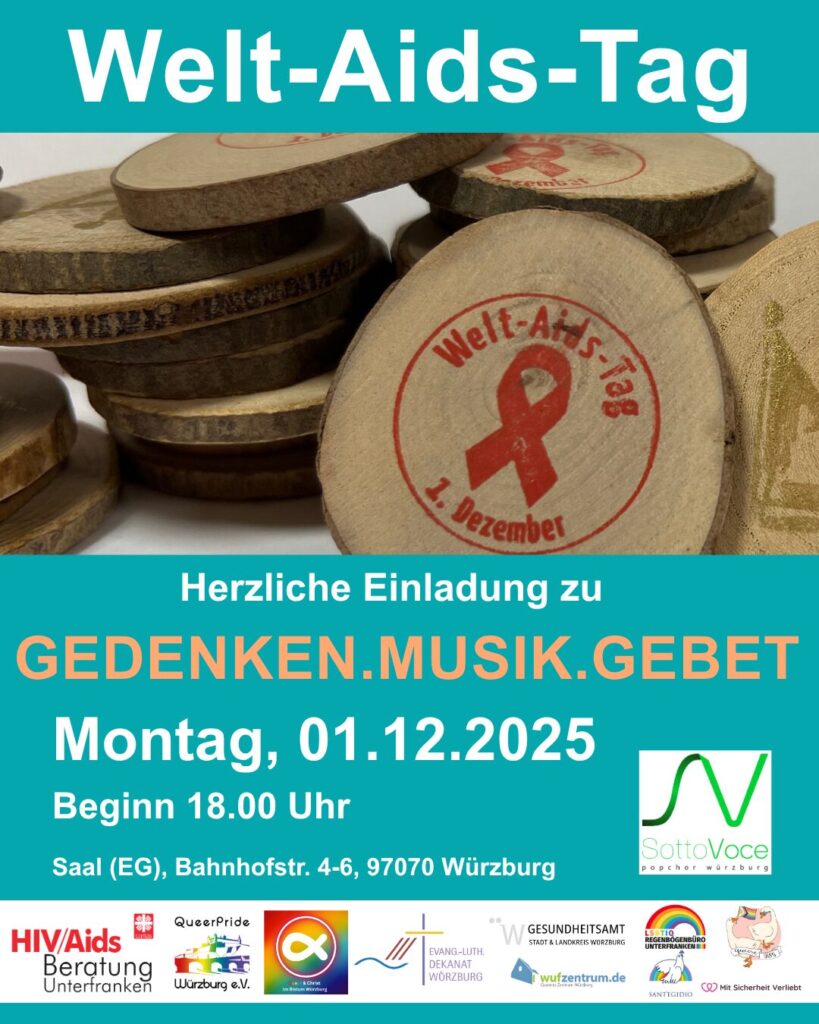 Gemeinsam mit dem Aktionsbündnis „Würzburg zeigt Schleife“ haben wir wieder einige Veranstaltungen geplant um Solidarität gegenüber Menschen mit HIV nicht nur bei uns sondern weltweit einzufordern und uns gegen jede Form von Ausgrenzung zu stellen.